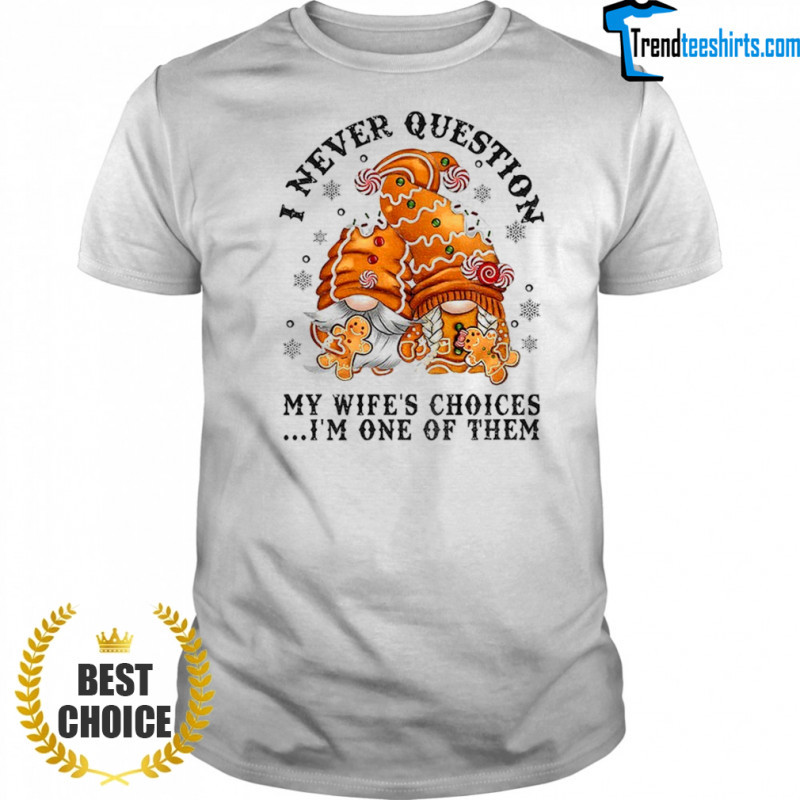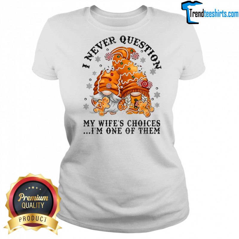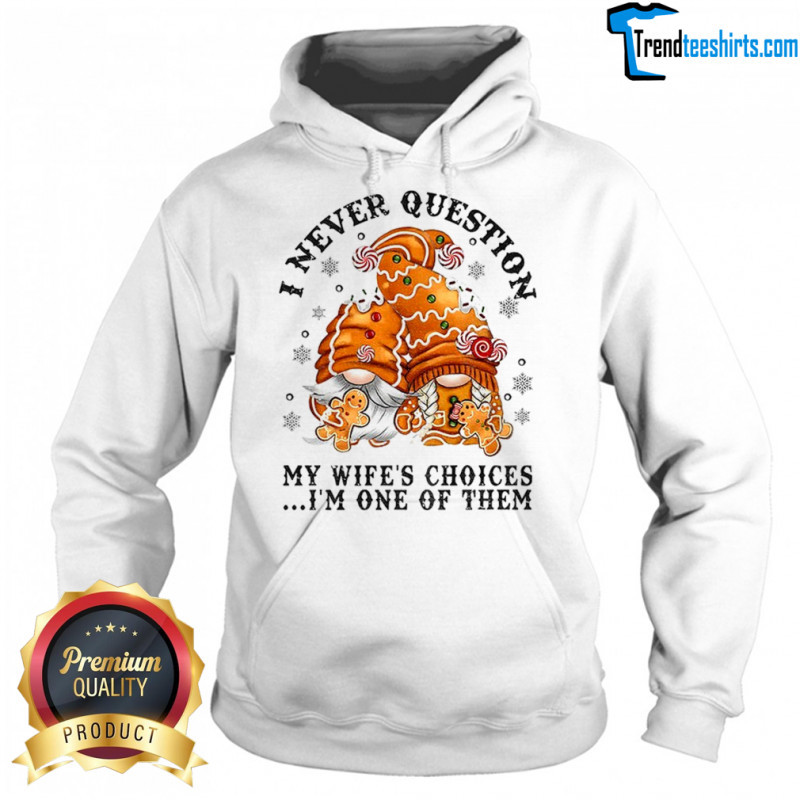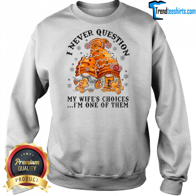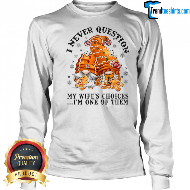 Buy Here: Gingerbread gnomes I never question my wife’s choices I’m one of them Merry Christmas shirt, hoodie, sweater, longsleeve and ladies t-shirt
