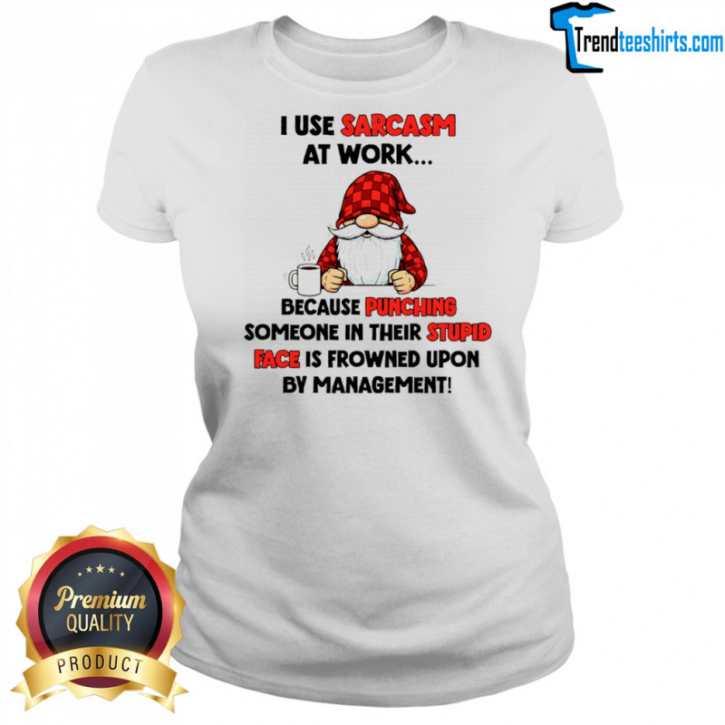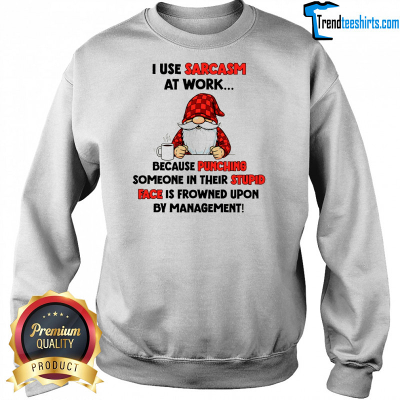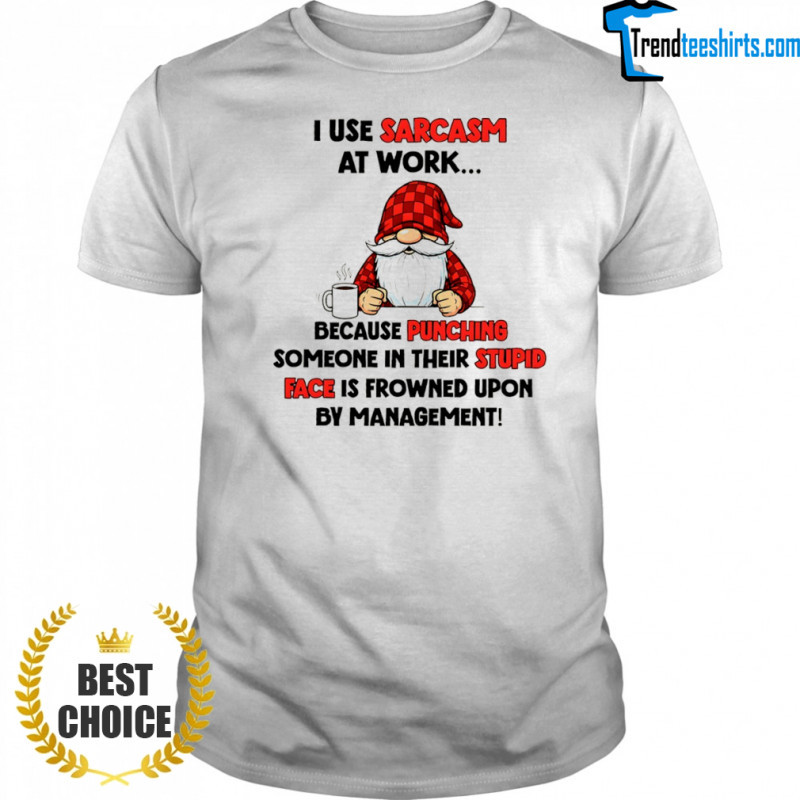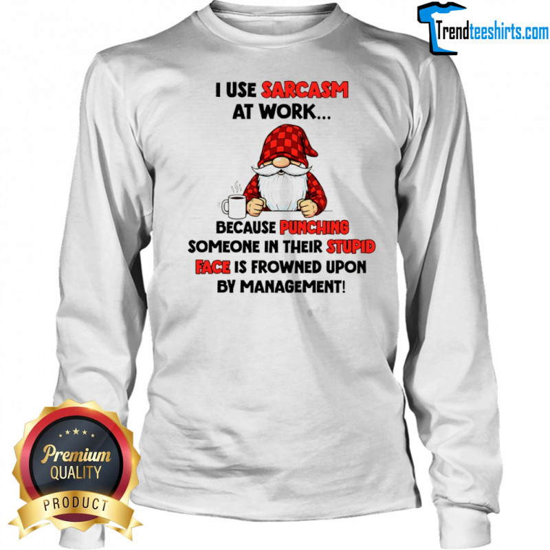 Buy Here: Gnome I use sarcasm at work because punching someone in their stupid face is frowned upon by management shirt, hoodie, sweater, longsleeve and ladies t-shirt