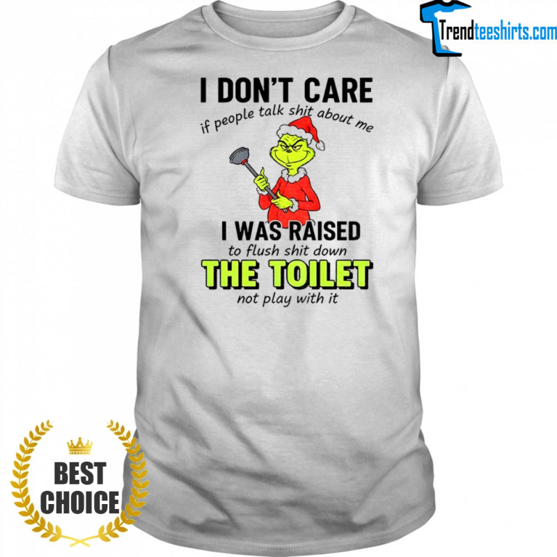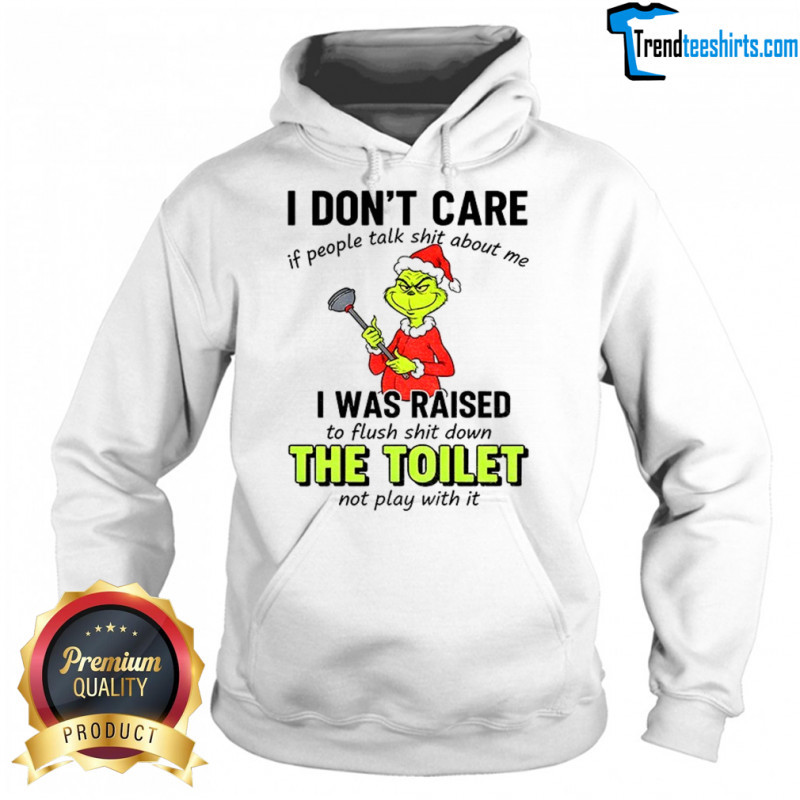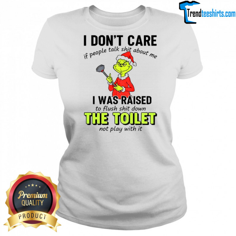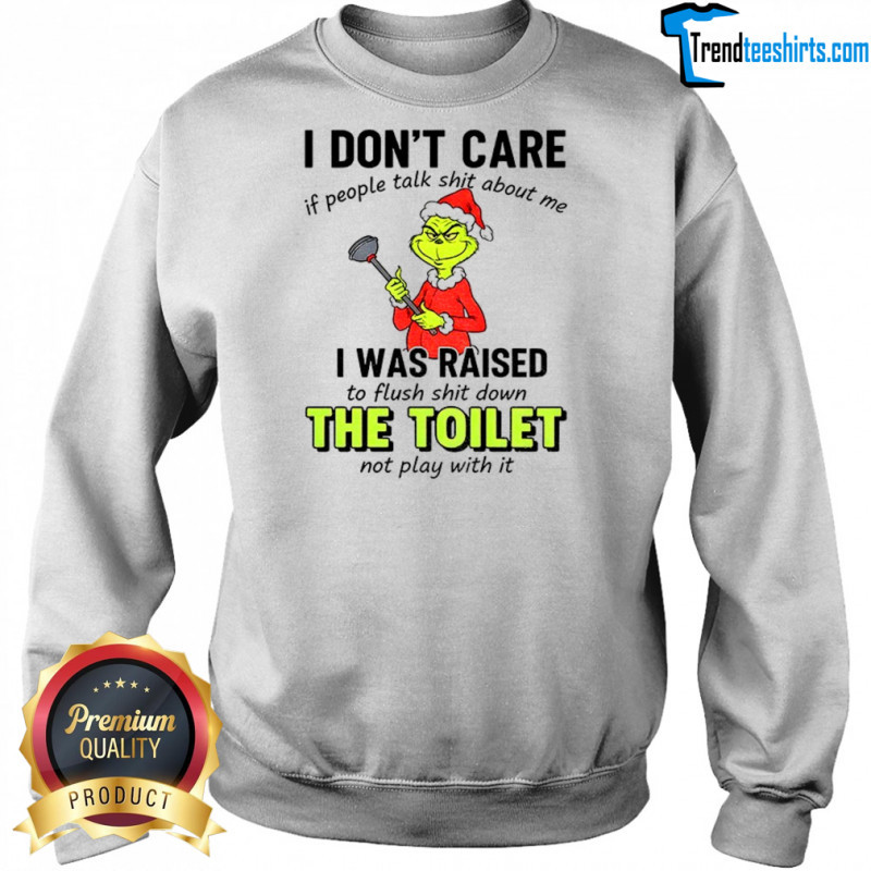 Buy Here: Grinch I don’t care if people tałk shit about me I was raised to flush shit down the toilet not play with it Christmas shirt, hoodie, sweater, longsleeve and ladies t-shirt