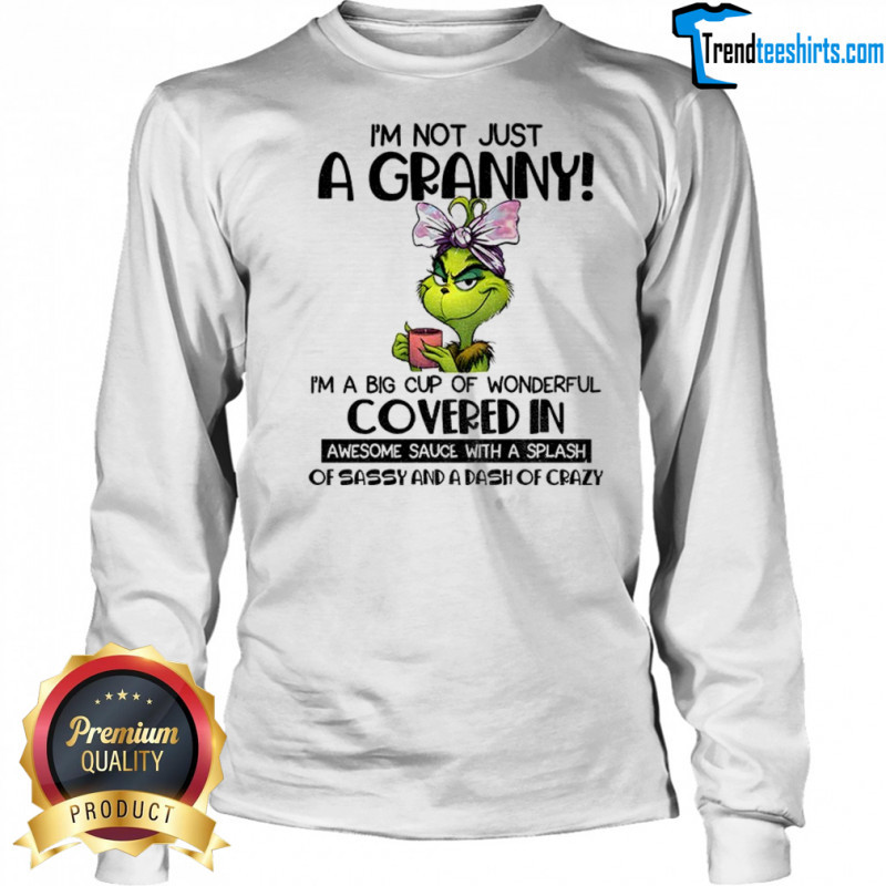 Buy Here: Grinch I’m not just a granny I’m a big cup of wonderful covered in awesome sauce with a splash Christmas shirt, hoodie, sweater, longsleeve and ladies t-shirt