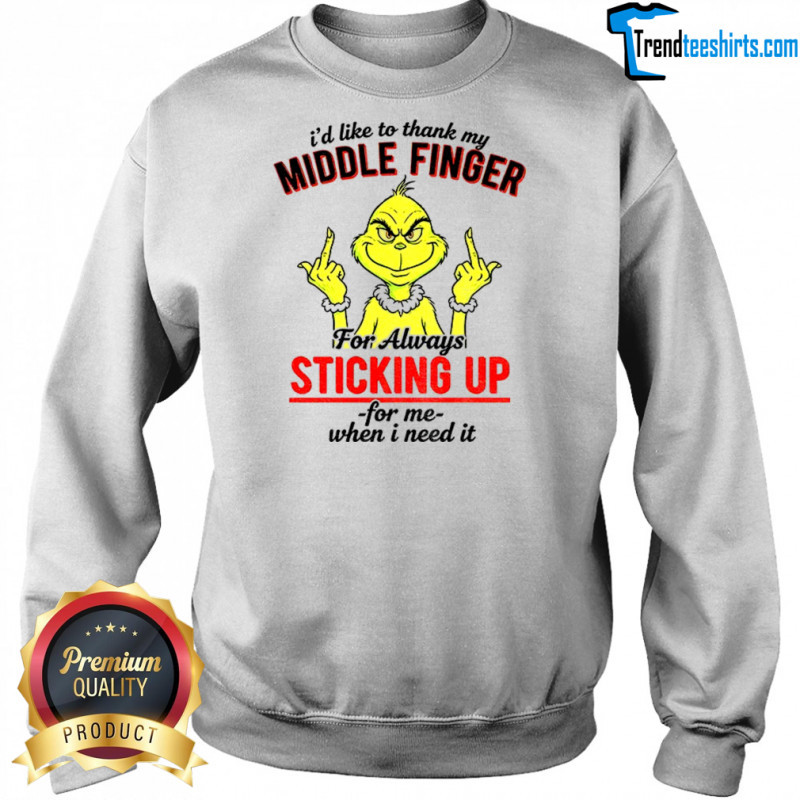 Grinch middle finger I’d like to thank my middle finger for always sticking up for me when I need it Christmas shirt