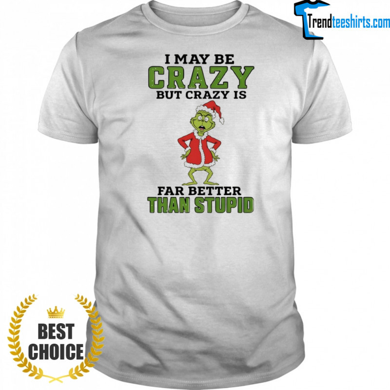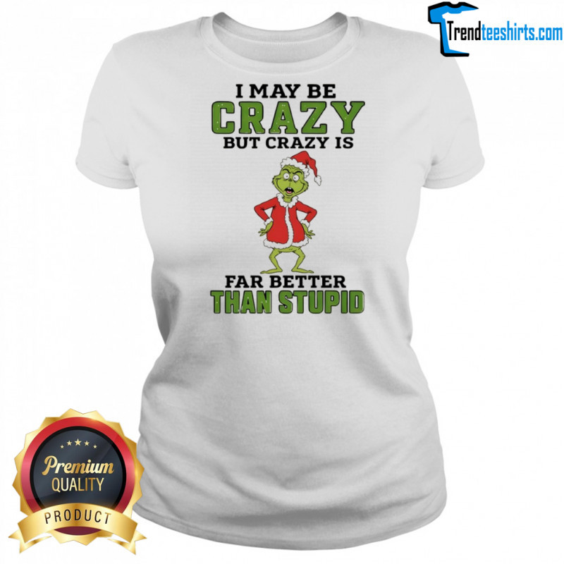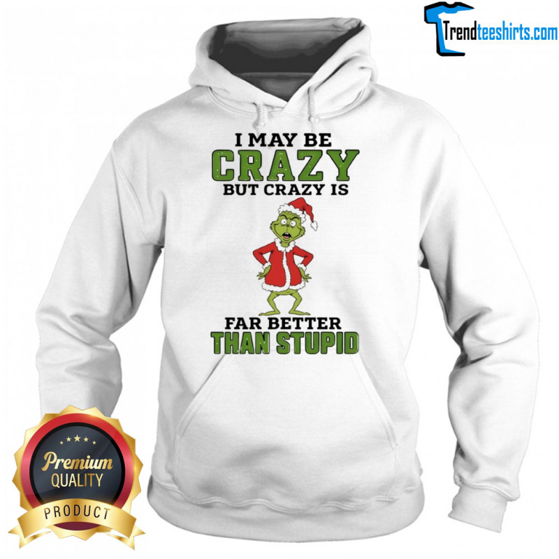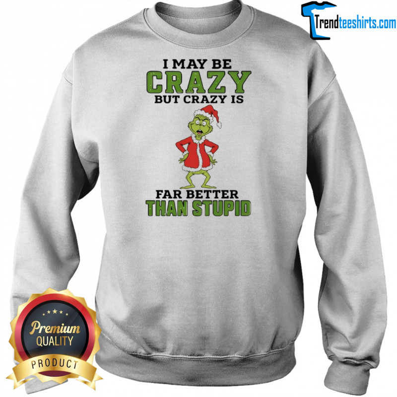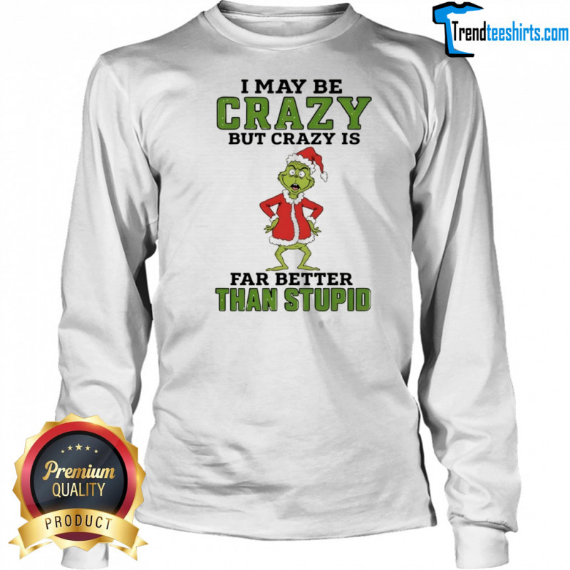 Buy Here: Grinch Santa hat I may be crazy but crazy is far better than stupid Christmas shirt, hoodie, sweater, longsleeve and ladies t-shirt