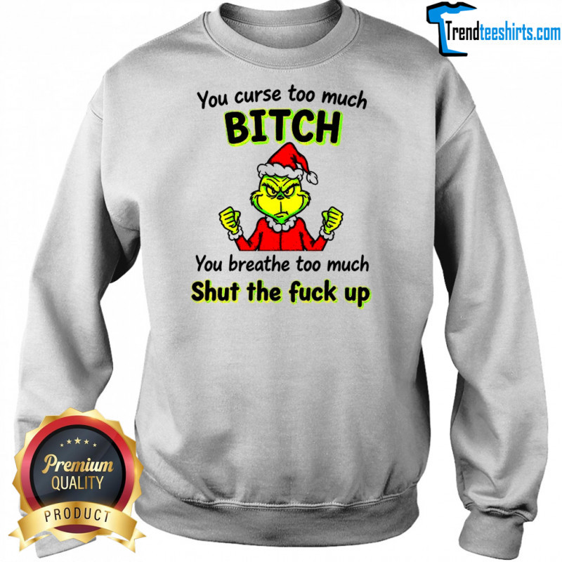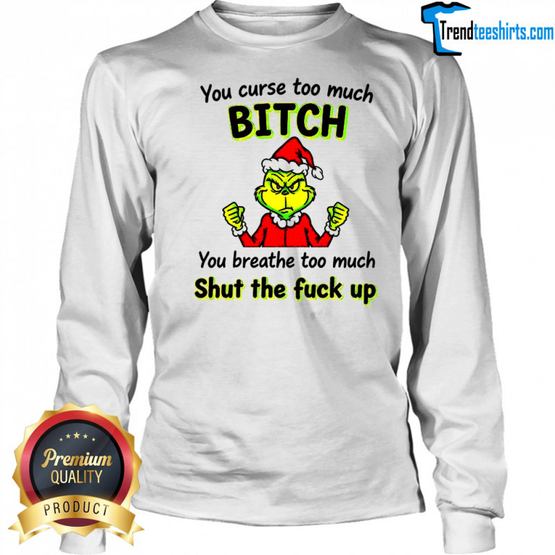 Buy Here: Grinch you curse too much bitch you breathe too much shut the fuck up Christmas shirt, hoodie, sweater, longsleeve and ladies t-shirt