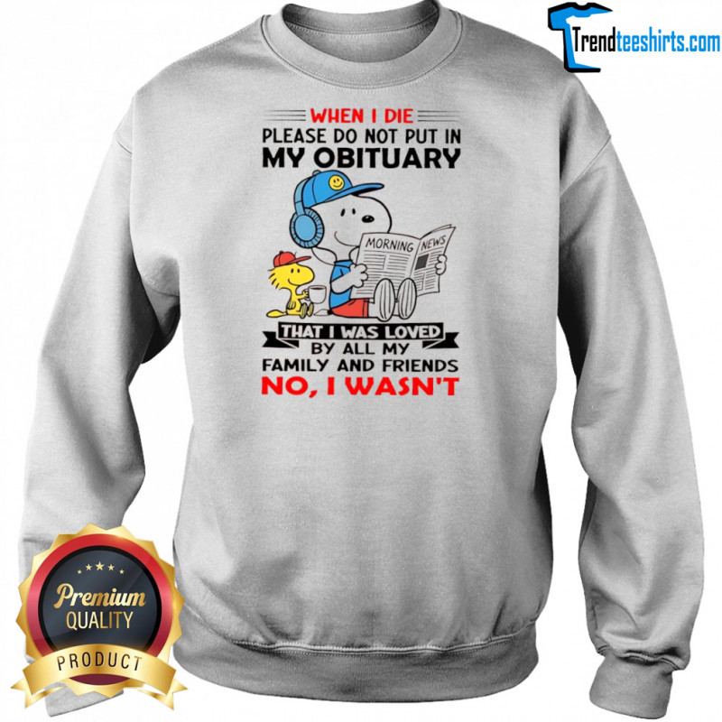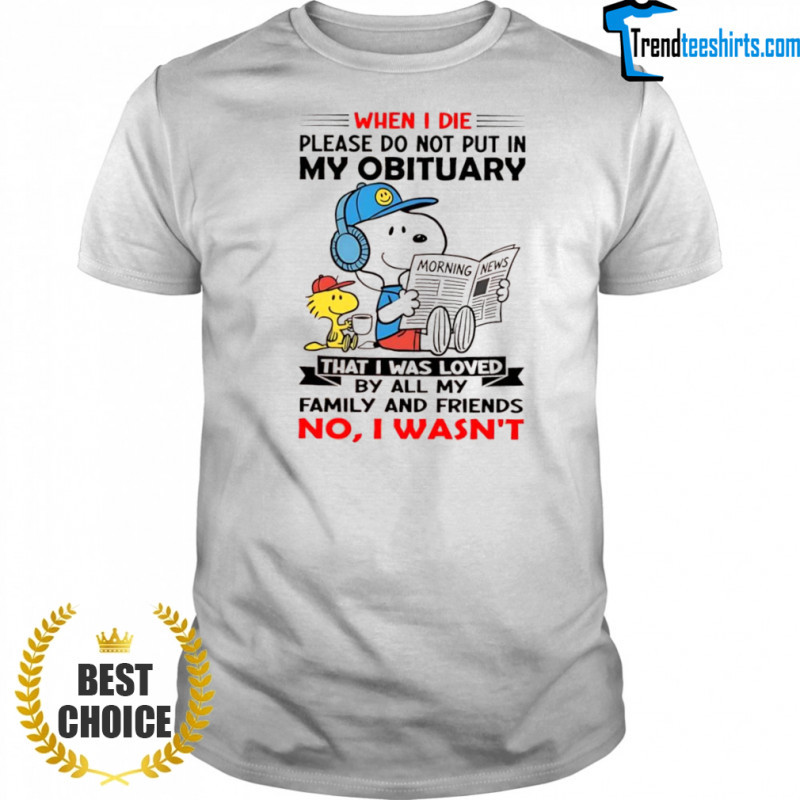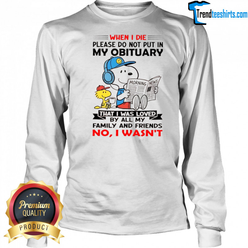 Buy Here: Woodstock and Snoopy when i die please do not put in my obituary that i was loved shirt, hoodie, sweater, longsleeve and ladies t-shirt