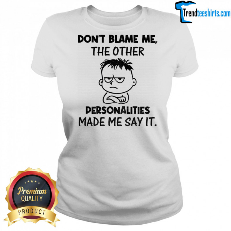 Elevate your fashion game and unleash your inner charm with the Young don’t blame me the other personalities made me say it shirt! Stand out from the crowd and show the world your unapologetic attitude. This shirt is not just clothing; it’s a lifestyle statement. Don’t miss the chance to add this unique piece to your collection and make a lasting impression. Be the trendsetter among your peers and let your outfit reflect your bold spirit. Get your hands on this shirt now and redefine what it means to be fashion-forward. Dare to be different, dare to be you!