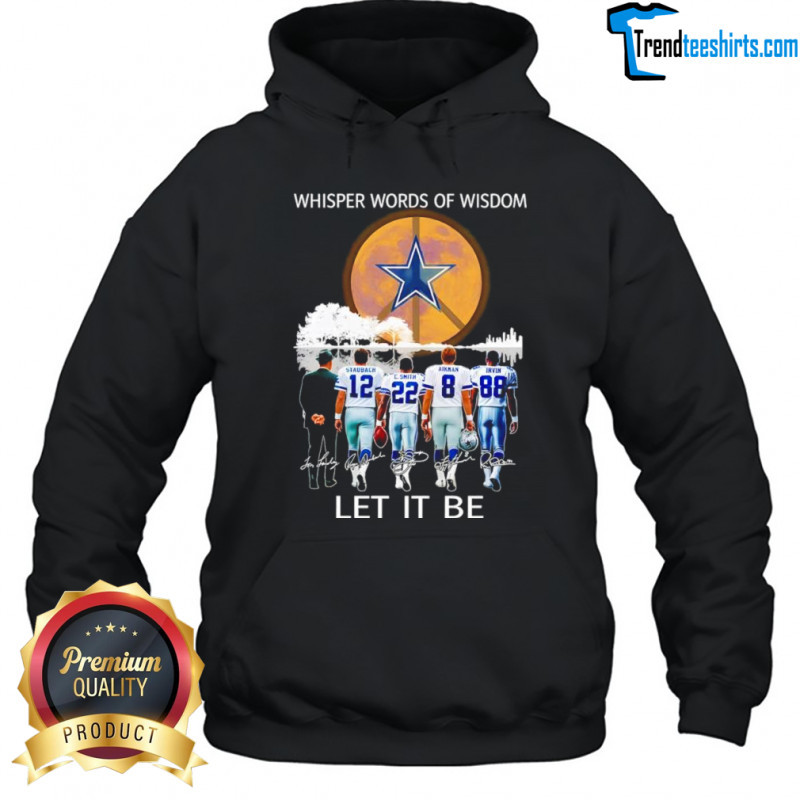 But this shirt is more than just a piece of clothing; it’s a symbol of unwavering loyalty and pride. Each signature represents the dedication and passion that define the Cowboys fanbase. Whether you’re cheering from the stands or watching from home, this shirt will not only showcase your allegiance but also inspire those around you. Let the echoes of Cowboys legends and the harmonious message of the Beatles’ classic anthem resonate through you as you gear up for game day. Stand out in the crowd and show your love for the Cowboys with this unique and meaningful Dallas Cowboys Whisper words of wisdom let it be signatures shirt.