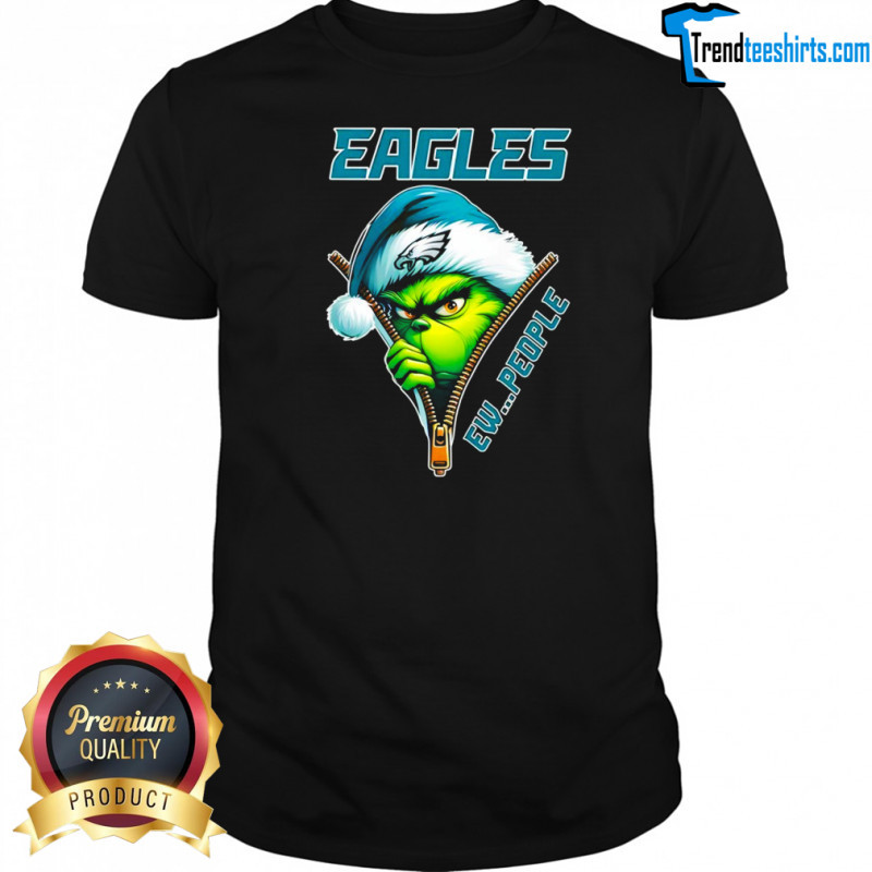 Embrace the holiday spirit in style and support your team with our exclusive Grinch wearing Philadelphia Eagles hat ew people shirt! Don’t miss out on the chance to stand out from the crowd with this eye-catching and playful design. Spread joy and team pride wherever you go, whether it’s at a game day gathering or a festive celebration. Elevate your holiday attire and showcase your unique personality with this must-have shirt. Add a touch of fun and team spirit to your wardrobe today and let the Grinch and Eagles fandom unite in this one-of-a-kind shirt! Get yours now and make a statement wherever you are!