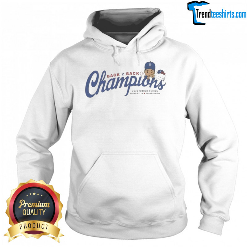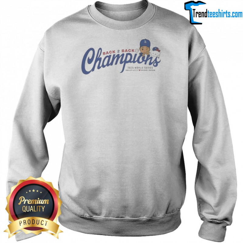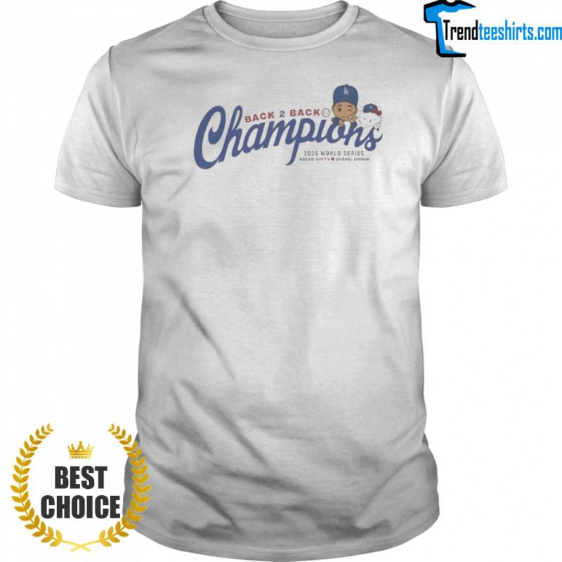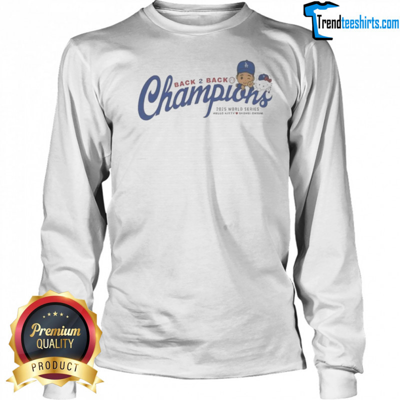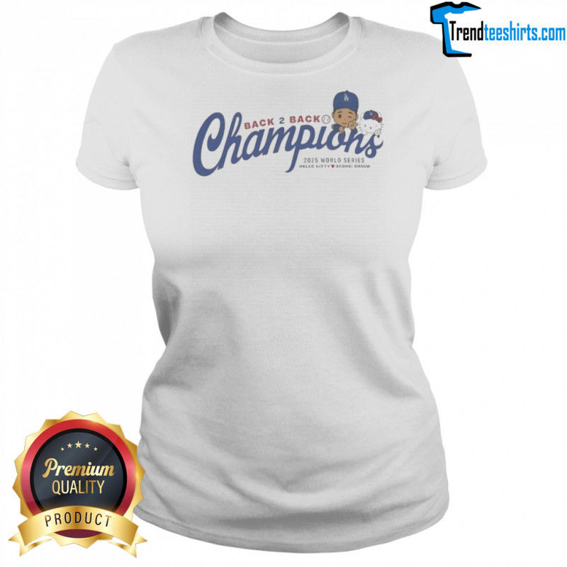 Buy here: Shohei Ohtani Hello Kitty Los Angeles Dodgers Back To Back Champions 2025 World Series T-shirt, hoodie, sweater, longsleeve and ladies t-shirt